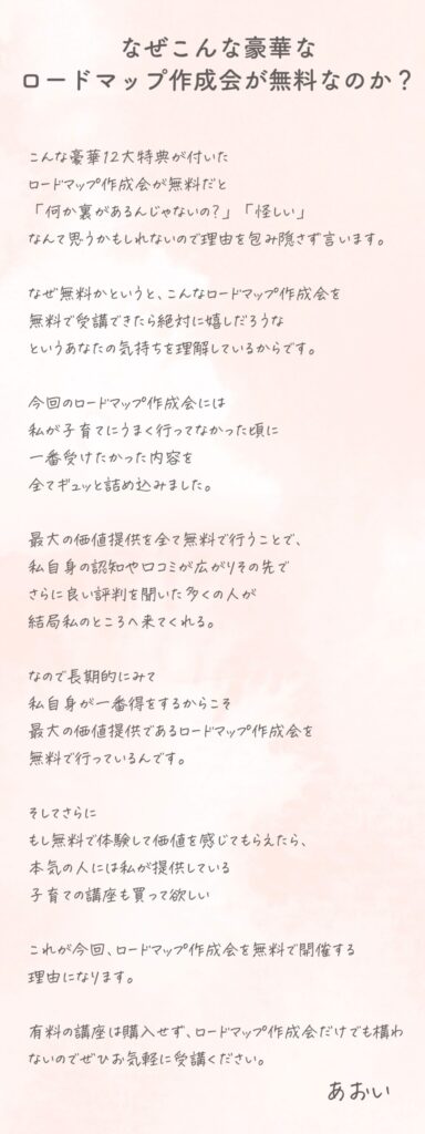 期間終了後はロードマップ作成会へ申し込みができなくなります。